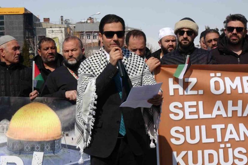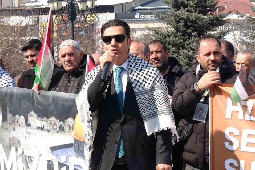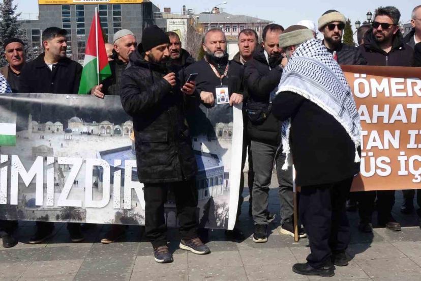 Erzurum Sivil Toplum Platformu üyeleri, Kudüs ve Aksa’nın özgürlüğü için yürüdü