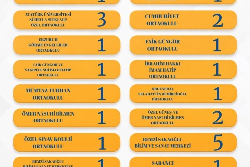Erzurum, 20. TÜBİTAK Ortaokul Öğrencileri Araştırma Projeleri Yarışmasında 29 projeyle bölge birincisi olarak önemli bir başa...