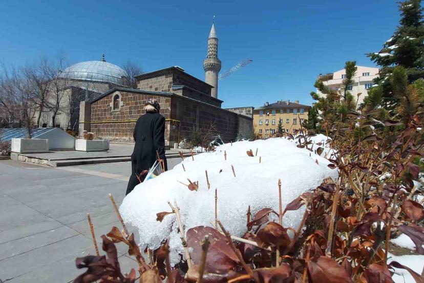 Doğu Anadolu’nun zirvesi Erzurum, Nisan ayı ortasında adeta dört mevsimi aynı anda yaşıyor. Şehrin yüksek kesimlerinde kapalı köy yollarını açmak için karla mücadele ekipleri yoğun mesai harcarken, kent merkezinde bahar güneşinin tadını çıkaran vatandaşlar ve buz tutan şadırvanlar ilginç görüntüler oluşturuyor.