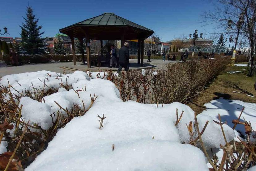 Erzurum’da Nisan ayı ile birlikte doğa canlanmaya başlasa da, kentin coğrafi yapısı mevsimsel zıtlıkları bir arada sunuyor. Deniz seviyesinden 1890 metre yükseklikteki kent merkezinde, gece dondurucu soğuklar nedeniyle cami şadırvanları buzla kaplanırken; gündüz ise park ve bahçeler güneşin sıcaklığına kapılan vatandaşlarla dolup taşıyor.