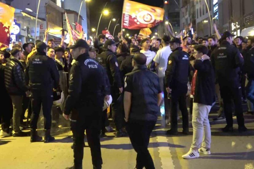 Maçın bitiş düdüğünün ardından Cumhuriyet Caddesi’nde toplanan Galatasaray taraftarları tezahüratlarla hem galibiyeti hem de avantaj sağladıkları şampiyonluğu erkenden kutladılar.