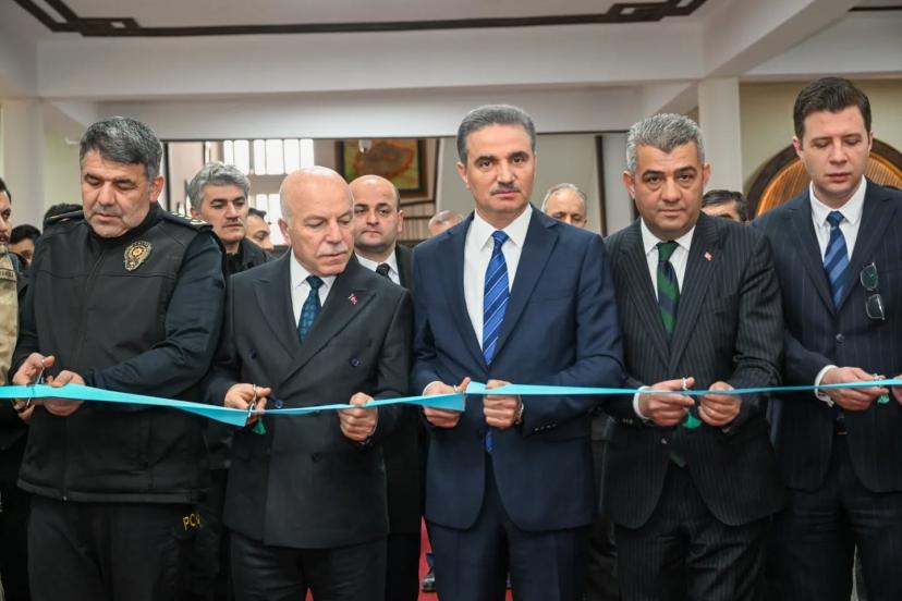 Vali Aydın Baruş, Büyükşehir Belediye Başkanı Mehmet Sekmen, İl Millî Eğitim Müdürü Süleyman Ekici ve protokol üyeleri, serginin açılış kurdelesini keserek eserleri inceledi.