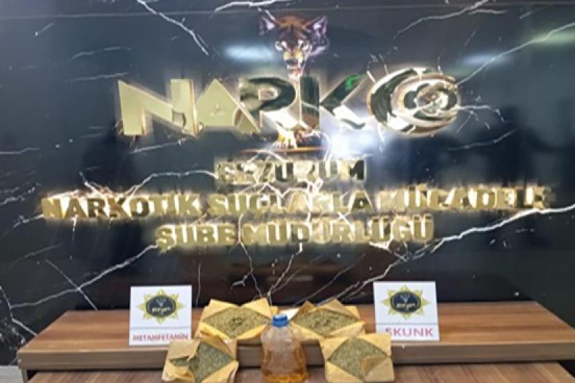Erzurum’da düzenlenen operasyonda 7 kilo 300 gram skunk ile 2 kilo 150 gram metamfetamin ele geçirildi, 3 şüpheli tutuklandı.