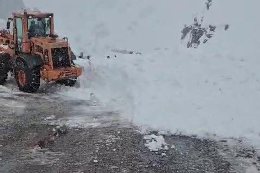 O sırada yoldan geçen bir araç ise son anda kurtularak büyük bir faciadan dönüldü. Çığın düşmesiyle birlikte yol bir süreliğine ulaşıma kapanırken, bölgede araçlar kuyruk oluşturdu.