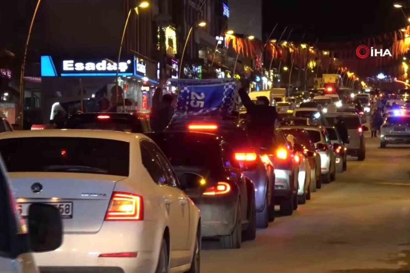 Trendyol 1. Lig’in 34. haftasında deplasmanda İstanbulspor’u 1-0 yenen Erzurumspor FK, şampiyonluk yolunda bir engeli daha aşarken, maçın bitiş düdüğüyle birlikte Erzurum sokakları adeta şenlik alanına döndü.