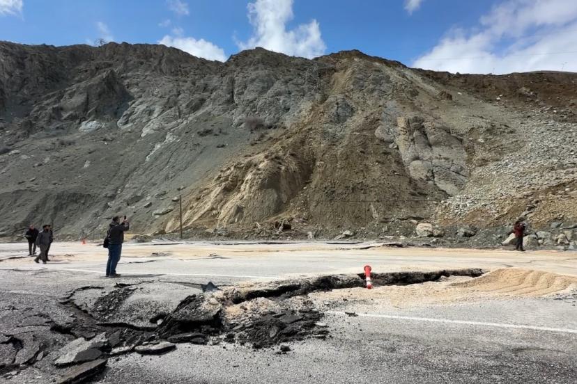 Bölgedeki derin yarıklar ve kara yolundaki çatlaklar nedeniyle sürücülerin dikkatli olması istenirken, yetkililerin sahada izleme çalışmaları devam ediyor.