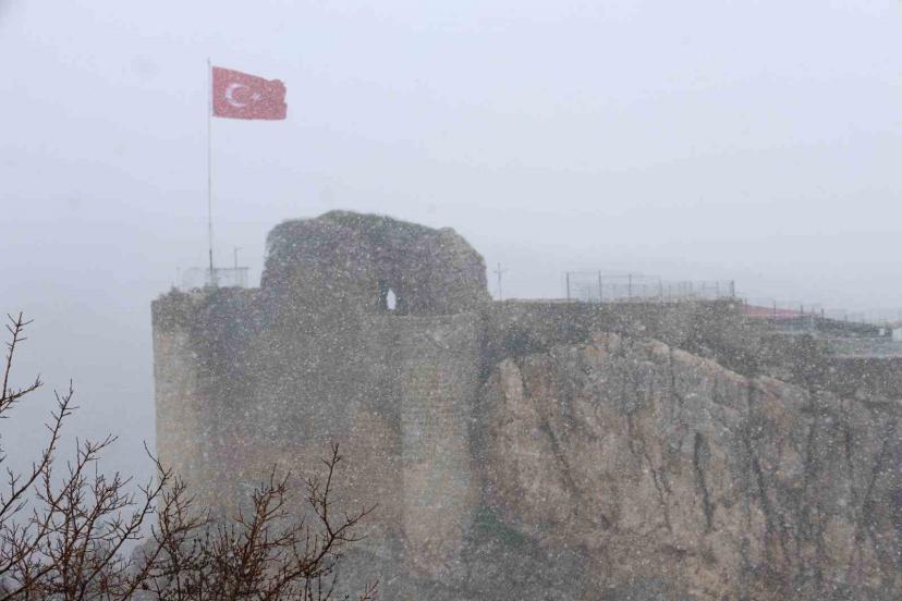 Harput’ta kar yağışı etkisini artırdı, tarihi mekanlar beyaza büründü