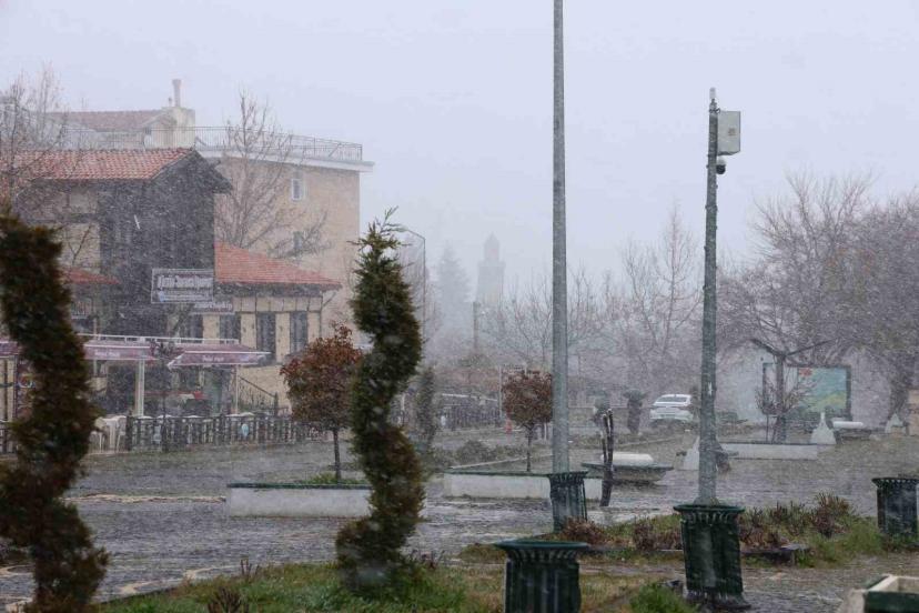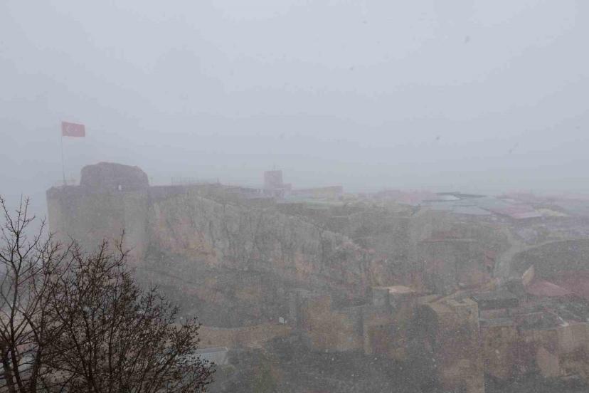 Elazığ’ın 4 bin yıllık geçmişe sahip Harput Mahallesi’nde etkisini giderek artıran kar yağışı, tarihi mekanları kısmen beyaza bürüdü. Bin 200 rakımlı mahallede lapa lapa yağan kar, Urartu Krallığı’ndan kalma Harput Kalesi başta olmak üzere tarihi yapıların üzerini örterek kartpostallık görüntüler oluşturdu. Ayrıca, nisan ayının ortasında yaşanan bu sürpriz kar yağışı, medeniyetler beşiğindeki tarihi dokuyla birleşince Harput’u adeta masalsı bir görünüme kavuşturdu.