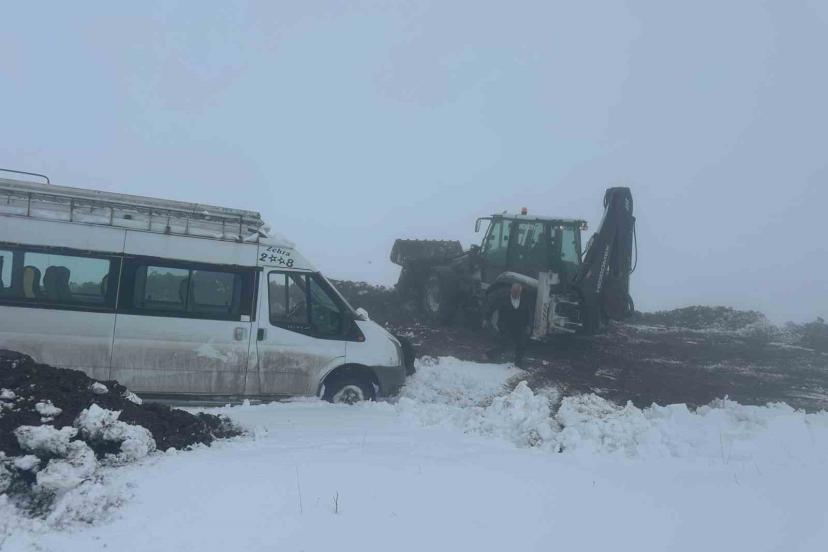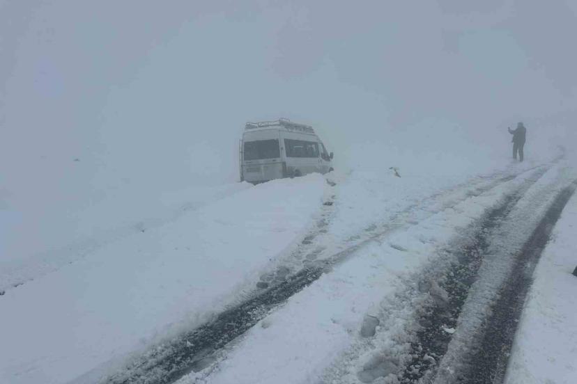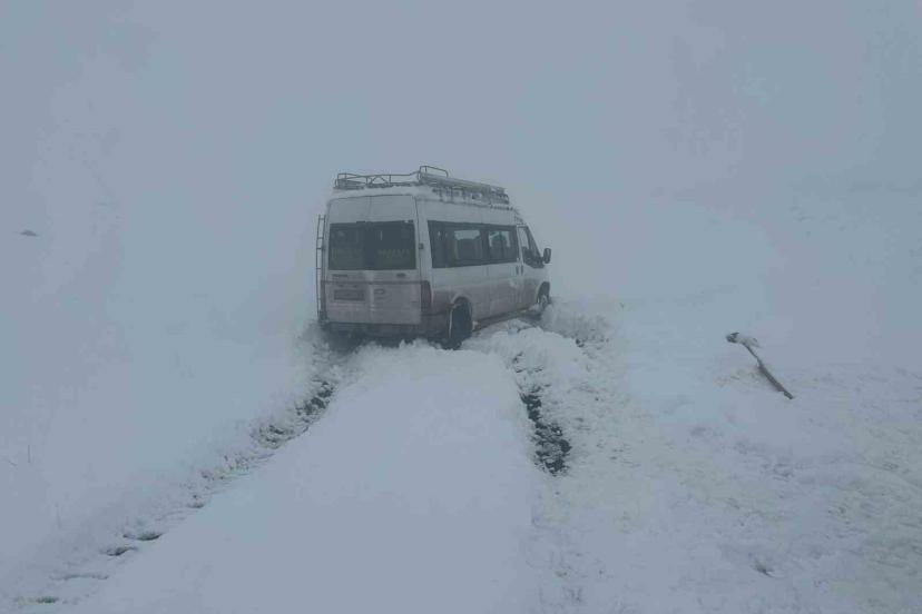 Iğdır’da yoğun kar yağışı: 57 köy yolu ulaşıma kapandı, şarampole devrilen minibüs kurtarıldı