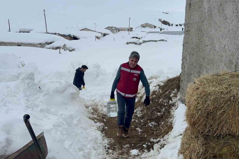 Muradiye İlçe Tarım ve Orman Müdürü Harun Altunkaynak, "Şu anda ilçemize bağlı Devetaş köyünün Sabunsata mevkisindeyiz. Buraya keçi yetiştiricisi bir üreticimizin hayvanlarının su ihtiyacını gidermek amacıyla geldik. Sert hava muhalefeti nedeniyle suları kesilmiş ve hayvanlar susuz kalmıştı. Biz de bu eksikliği gidermek amacıyla ekip arkadaşlarımızla beraber üreticimize su getirdik. İnşallah eksiklerini gidermeye devam edeceğiz" dedi.