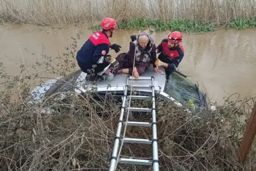 Ekipler, yaptığı çalışmayla araç içinde mahsur kalan sürücü Deniz Gemici ve 72 yaşındaki annesi Rabia Gemici'yi kurtardı.
