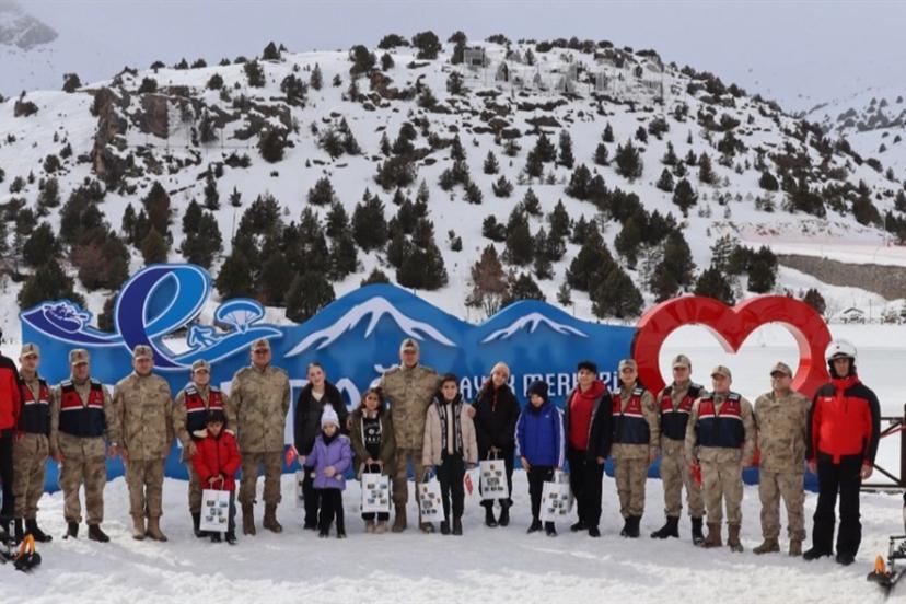 Erzincan İl Jandarma Komutanlığı tarafından düzenlenen sosyal sorumluluk etkinliğinde, şehit ve gazi çocukları Ergan Dağı Kayak Merkezi’nde misafir edildi.