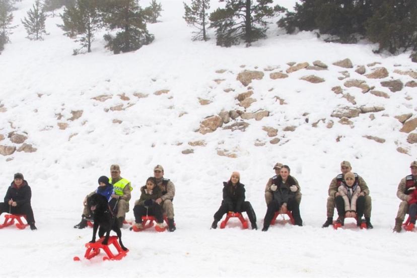 Erzincan İl Jandarma Komutanlığı tarafından düzenlenen sosyal sorumluluk etkinliğinde, şehit ve gazi çocukları Ergan Dağı Kay...