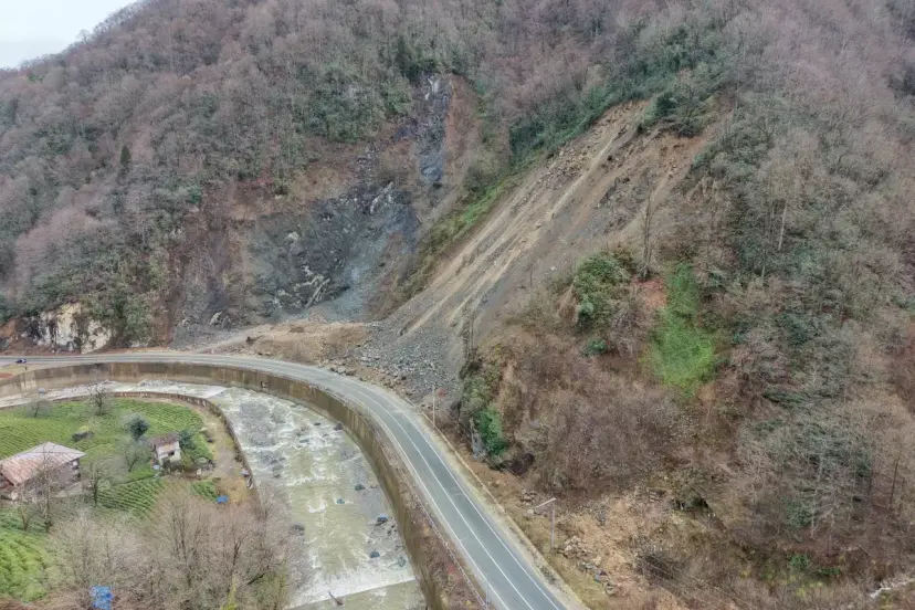 Rize'nin Çayeli ilçesinde meydana gelen heyelanda, yamaçtan kopan kayaların ulaşımı kapattığı yolda ekiplerin incelemeleri sürüyor. Yer yer akıntının sürdüğü yamaç, dronla görüntülendi. Tedbir amaçlı ulaşıma kapatılan yolda, heyelan anlarına ait yeni görüntüler de ortaya çıktı. Görüntülerde; kayaların hızla yamaçtan kopup yola düştüğü, çevreyi toz bulutunun kapladığı, jandarma ekiplerinin yolda önlemler aldığı anlar yer aldı.