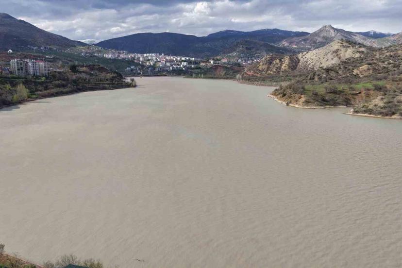 Tunceli’de karların erimesi ve yağışlara birlikte Uzunçayır Baraj Gölü’nün kodu yükselirken, rengi ise akan toprakla birlikte kahverengiye döndü.