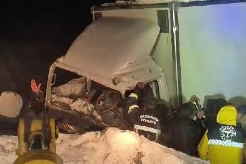 Erzurum’un Karayazı ilçesinde etkili olan yoğun kar yağışı ve fırtına nedeniyle görüş mesafesinin düşmesi sonucu iki kamyon kafa kafaya çarpıştı. Kazada 1 sürücü hayatını kaybetti.