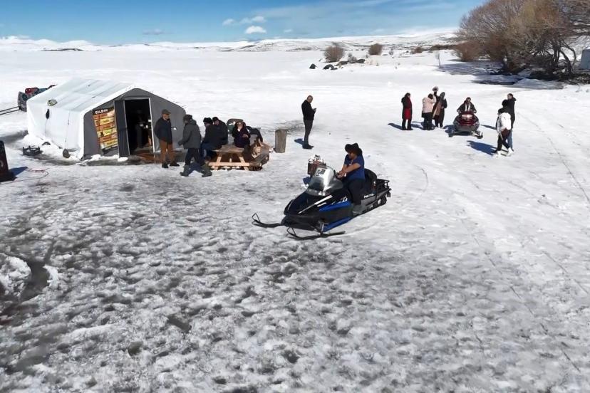 Doğu Anadolu’nun saklı denizi olarak adlandırılan Çıldır Gölü, büründüğü beyaz örtüsüyle macera tutkunlarını ağırlamaya devam ediyor. Yaklaşık 70 santimetre buz kalınlığına ulaşan göl, atlı kızakların "dörtnala" safarisine sahne oluyor.