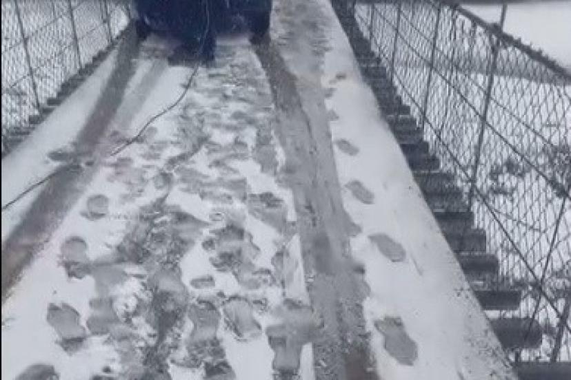 Kars’ta asma köprüde korku dolu anlar: Otomobil buzda kayarak asılı kaldı