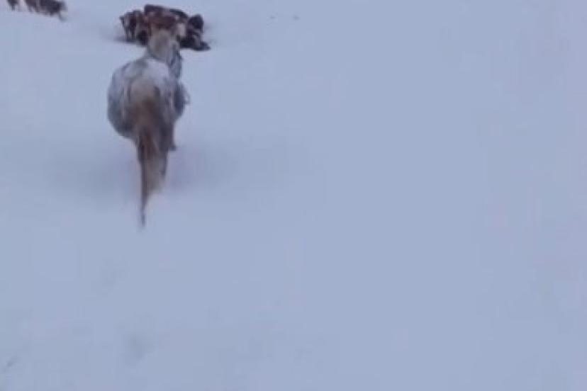 Kars’ın Arpaçay ilçesine bağlı Hasançavuş köyünde bir vatandaşın cep telefonu kamerasına yansıyan görüntülerde; atın göğüs hizasına kadar yükselen karın içinde mahsur kaldığı görülüyor. İlk başlarda hareket etmekte zorlanan ve kara gömülen atın kendi çabasıyla mahsur kaldığı yerden çıkması yer alıyor.