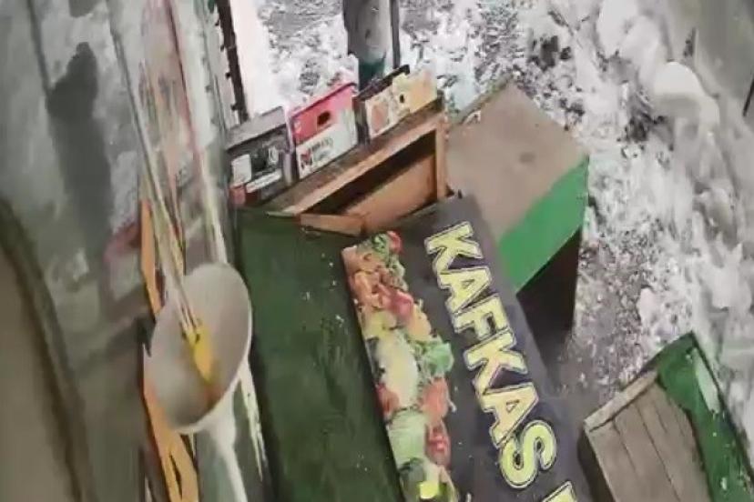 Olay Ahmet Aslan Caddesi’nde meydana geldi. Kaldırımda yürüyen bir vatandaş, binadan kopan buz ve kar kütlesi üzerine düşmesinden son anda kurtuldu. O anlar cadde üzerinde bulunan işyerinin güvenlik kamerasına yansıdı.