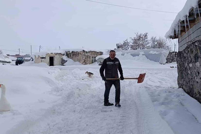 Kars’ta etkili olan yoğun kar yağışı, kırsal bölgelerde hayatı olumsuz etkilemeye devam ediyor. Özellikle Akyaka ilçesine bağlı Duraklı Köyü’nde kar kalınlığının yer yer 1 metreye ulaşması, köylüleri harekete geçirdi.