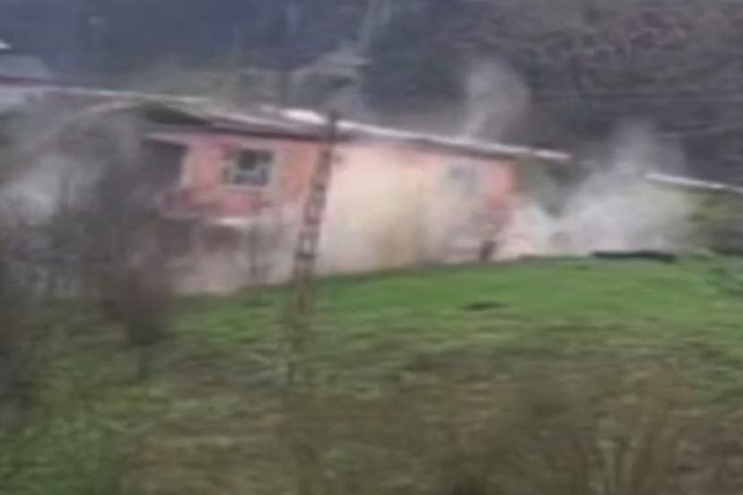 Kastamonu'da heyelan riski nedeniyle boşaltılan 2 katlı evin çöktüğü anlar güvenlik kamerasına yansıdı.