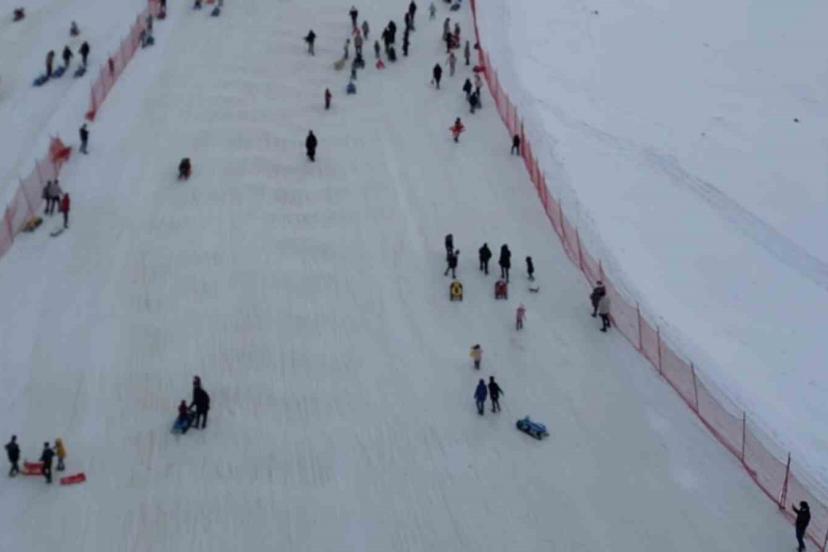 Bitlis’in kış turizminde önemli adreslerinden biri olan El Aman Kayak Merkezi’ndeki yoğunluk havadan görüntülendi.