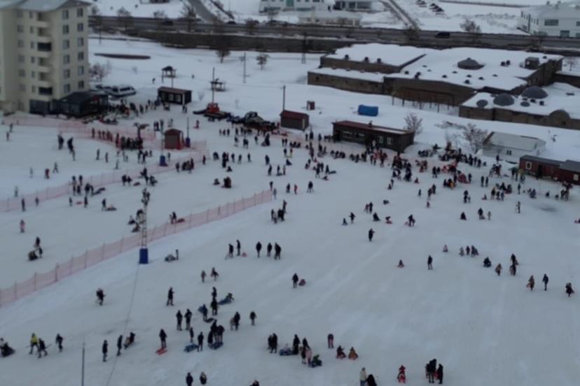 Kente merkezindeki El Aman Kayak Merkezi’nde kar yağışının ardından oluşan elverişli pist şartları; kayak, kızak ve snowboard tutkunlarını merkeze çekti. Aileleriyle birlikte gelen ziyaretçiler, hem kayak yaptı hem de kış manzarasının keyfini çıkardı. Kayak pistlerinde yaşanan yoğunluk havadan görüntülenirken, ortaya renkli ve hareketli görüntüler çıktı.