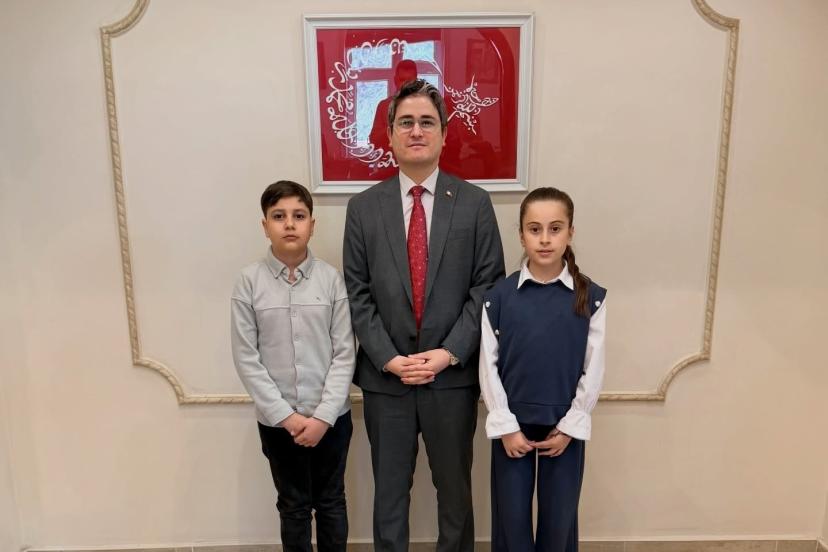 Etkinlik kapsamında Kaymakamlık makamı, 4. sınıf öğrencileri Yağmur Naz Bıyık ve Rüzgar Çobanoğlu’na temsili olarak teslim edildi.