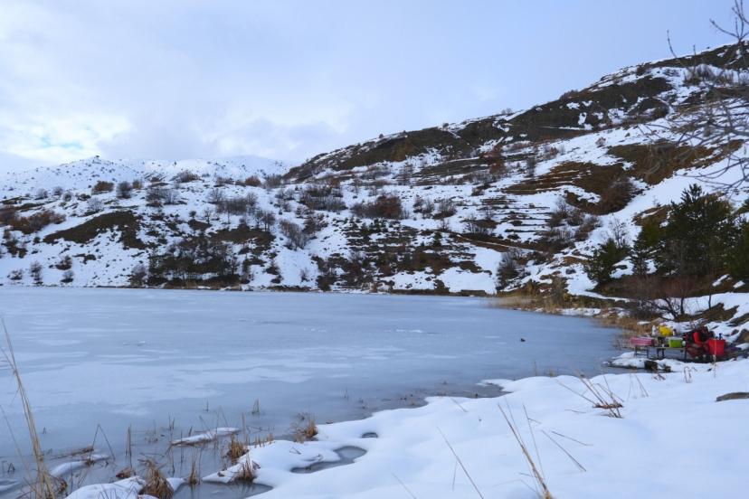 Cam gibi donan göl yüzeyi ve çevresini saran doğal doku, bölgeyi adeta bir kış tablosuna dönüştürdü. Havadan kaydedilen görüntüler, Ardos Gölü’nün doğayla iç içe olan eşsiz konumunu gözler önüne serdi.