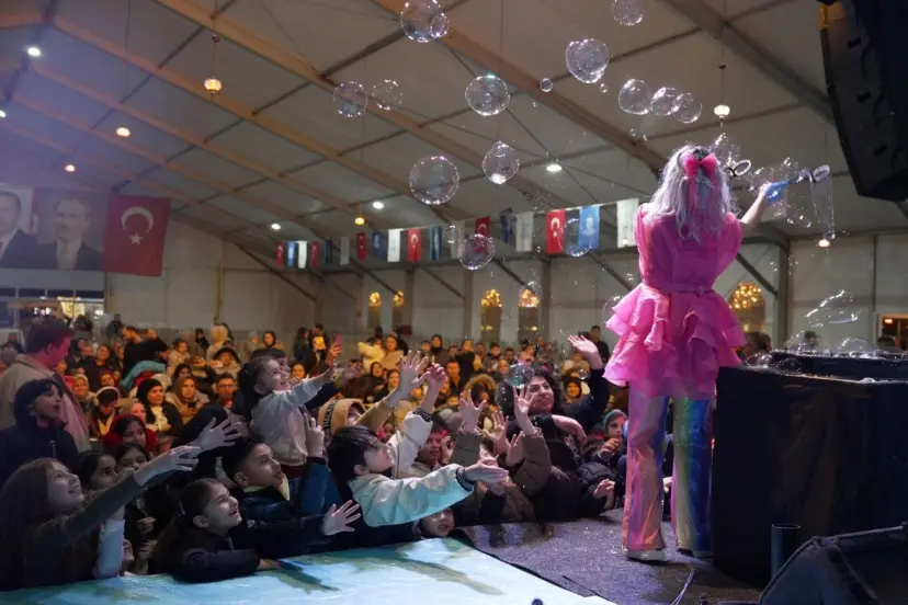 Günün en renkli etkinliği ise Bubble Şov oldu. Sahne önünde toplanan çocuklar şarkılar, şiirler ve oyunlara eşlik ederek gönüllerince dans etti. Sahneden gönderilen sabun baloncuklarını yakalamaya çalışan çocuklar kahkahalarıyla gönüllerde mutluluk yaşattı. Bu arada Ramazan şerbeti, patlamış mısır ve macundan oluşan Büyükşehir ikramları çadır dışındaki alanda vatandaşlara sunuldu.