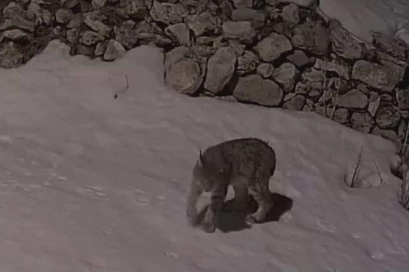 Erzincan’ın İliç ilçesine bağlı Bürüncek köyünde nesli tükenme tehlikesi altında bulunan vaşak görüldü. Yoğun kar yağışı ve dondurucu soğukların etkili olduğu bölgede yiyecek arayan vaşak, güvenlik kamerasına yansıdı.
