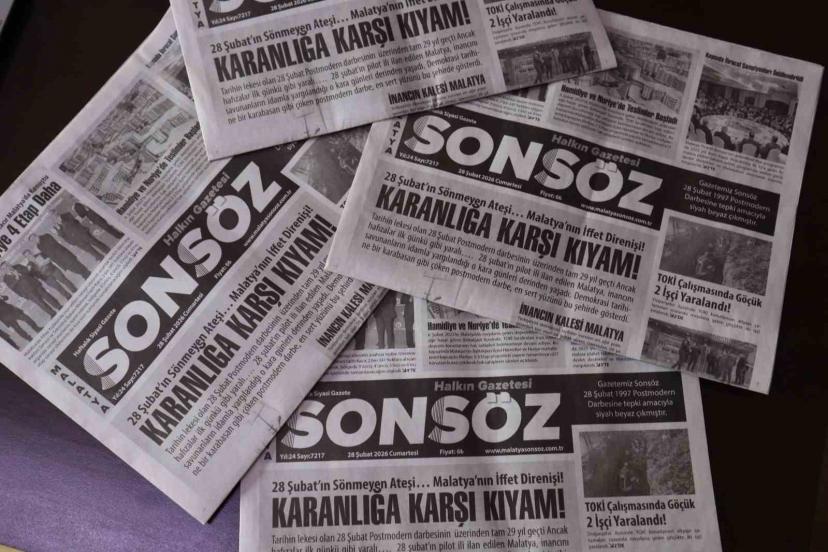 Türkiye’nin demokrasi tarihine post-modern darbe olarak geçen 28 Şubat’ın yıl dönümünde, Malatya Sonsöz Gazetesi, siyah-beyaz baskıyla çıktı.