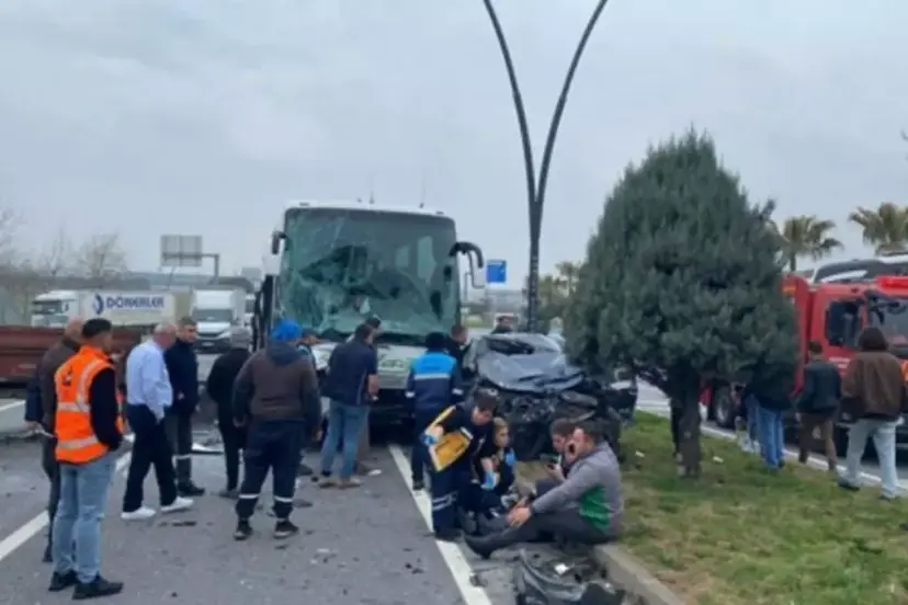 Kaza, saat 11.30 sıralarında İzmir- Manisa çevre yolu Yunusemre ilçesi kesimindeki Saat Kulesi Kavşağı Menemen Köprüsü girişinde meydana geldi. İzmir'den Manisa'nın Akhisar ilçesi yönüne giden Duran Kocatürk'ün (72) kullandığı 16 AFP 130 plakalı otomobil, sağ şeritteki aynı yöne giden Mevlüt Yurt (48) yönetimindeki 45 ET 318 plakalı asfalt atığı yüklü traktöre çarptı. Çarpmanın etkisiyle savrulan otomobil, sol şeride geçti. Bu sırada gelen İ.E. (52) idaresindeki 10 HF 160 plakalı İzmir-İstanbul seferini yapan yolcu otobüsü, otomobile çarptı. Kazada traktör sürücüsü Mevlüt Yurt, otomobil sürücüsü Duran Kocatürk, yanındaki Nazire Kocatürk (71) otobüste görevli muavinler Enes Bilgili (20) ve Kadir Şerifoğlu (26) yaralandı. Çevredekilerin ihbarıyla kaza yerine çok sayıda ambulans, polis ve itfaiye ekipleri sevk edildi. Yaralılar, araçlardan çıkarılarak, ekipler tarafından hastanelere kaldırıldı. Tedaviye alınan yaralıların durumlarının iyi olduğu bildirildi. Kaza ile ilgili soruşturma başlatıldı.