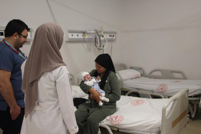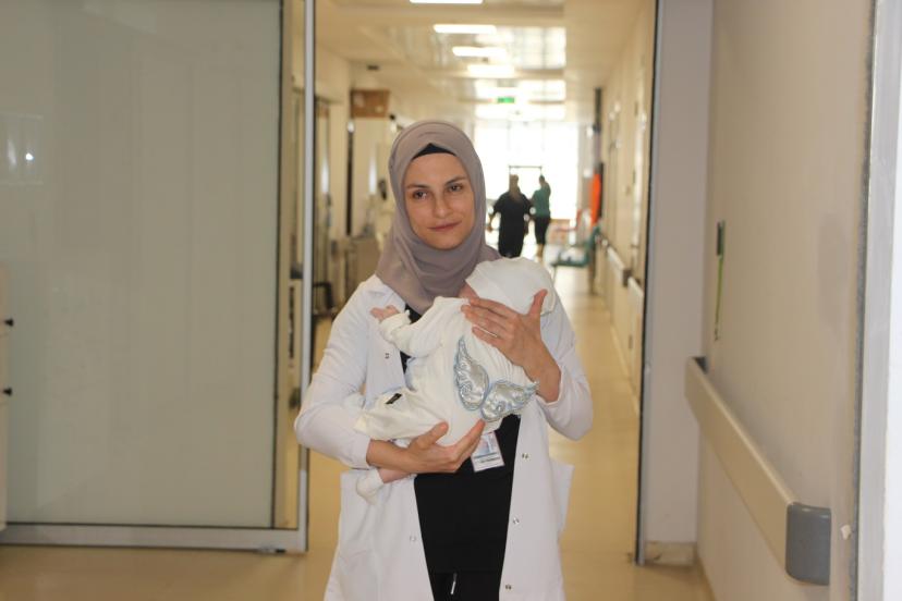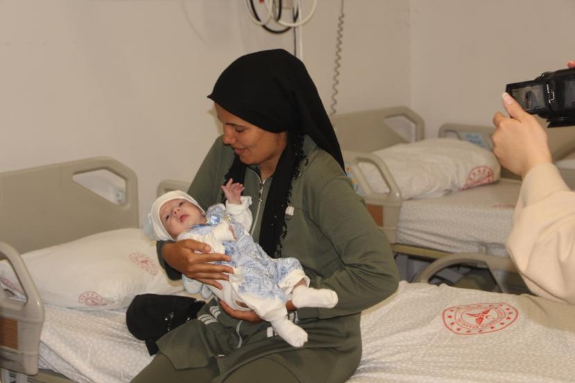 57 günün ardından bebeğini kucağına alan anne Meha el Ahmet, sağlık çalışanların yoğun çabalarından dolayı teşekkürlerini ileterek, çok mutlu olduğunu ifade etti.