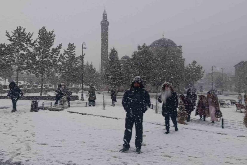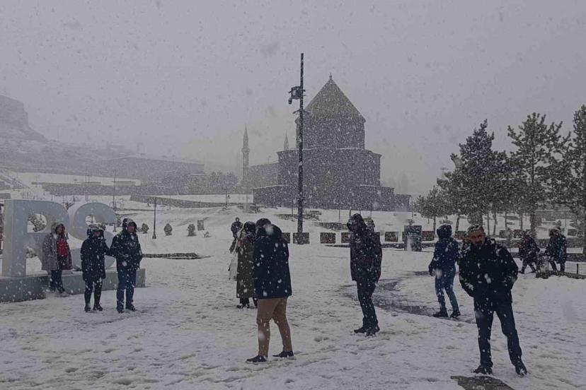 Meteorolojinin uyarısının ardından Kars’ta akşam saatlerinde başlayan yoğun kar yağışı etrafı kısa sürede beyaza bürüdü. Kente tur operatörleri aracılığıyla gezmeye gelen vatandaşlar, kar yağışı altında bol bol fotoğraf çekildi.