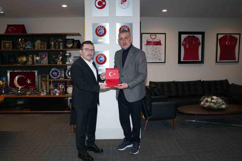Buluşmada Türkiye Futbol Federasyonu Başkanı İbrahim Ethem Hacıosmanoğlu, AK Parti Erzurum Milletvekili Selami Altınok’a Milli Takım forması hediye etti.