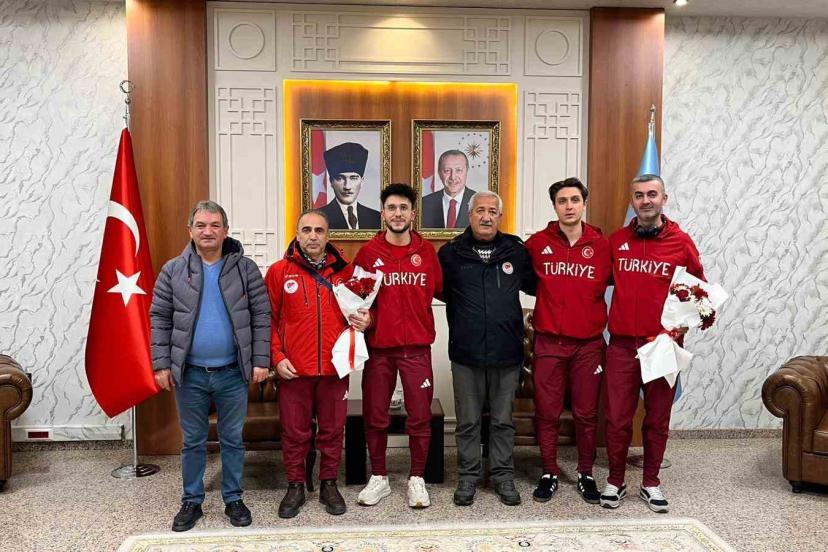 Milli sporcu Furkan Akar çiçeklerle karşılandı