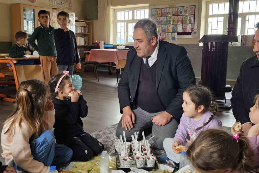 Müdür Bozyel’den köy okulu öğrencilerine döner ve ayran sürprizi