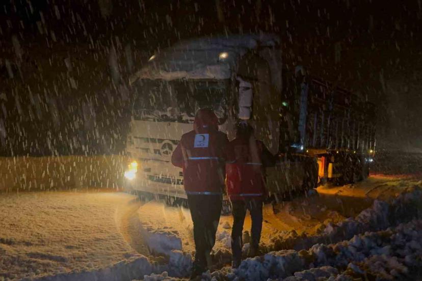 Türk Kızılay Muş Afet Müdahale Merkezi Müdürü Baran Akar, yoğun kar yağışı nedeniyle Muş-Bingöl Karayolu’nun Buğlan Geçidi’nde yolda kalan vatandaşlara destek olduklarını belirterek, "Yolda kalan vatandaşlara kumanya desteği veriyoruz. Son vatandaşımız evine ulaşıncaya kadar, yağış azalıncaya kadar da desteklerimize devam edeceğiz. Bu bölgede yaklaşık 40 araca beslenme desteği verdik. Yoğun kar yağışı devam etmekte. Kar yağışı duruncaya kadar buradayız" dedi.