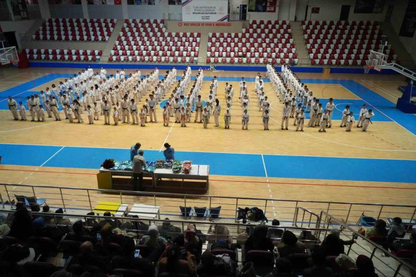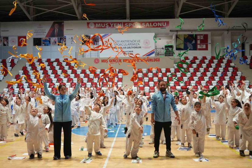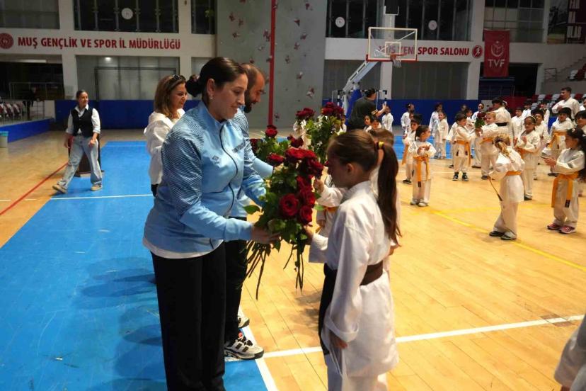 Muş Gençlik ve Spor İl Müdürlüğü bünyesinde düzenlenen karate kurslarına katılan 7-18 yaş aralığındaki 300 sporcu, Muş Kapalı Spor Salonu’nda gerçekleştirilen kuşak terfi töreninde büyük heyecan yaşadı. Tören sırasında öğrenciler, "Öğretmene el kalkmaz, öğretmenin eli öpülür" yazılı pankartlar açarak öğretmenlerine olan saygılarını ifade etti.