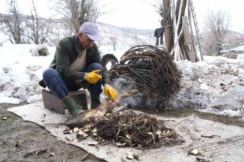Muş’ta besiciler dededen toruna aktarılan geven otu geleneğini zorlu kış şartlarına rağmen sürdürüyor.