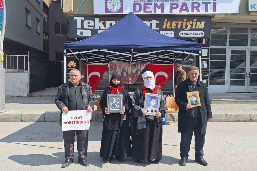 Muş’ta DEM Parti İl Başkanlığı önünde evlat nöbeti tutan aileler, çocuklarına teslim olmaları için çağrıda bulundu.
