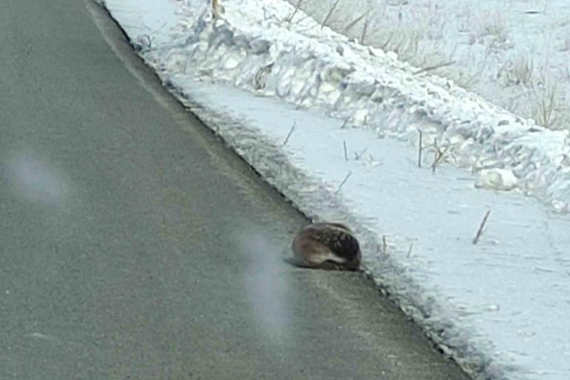 Ardahan’da yolunu kaybeden su samuru kara yolu kenarında görüntülendi.