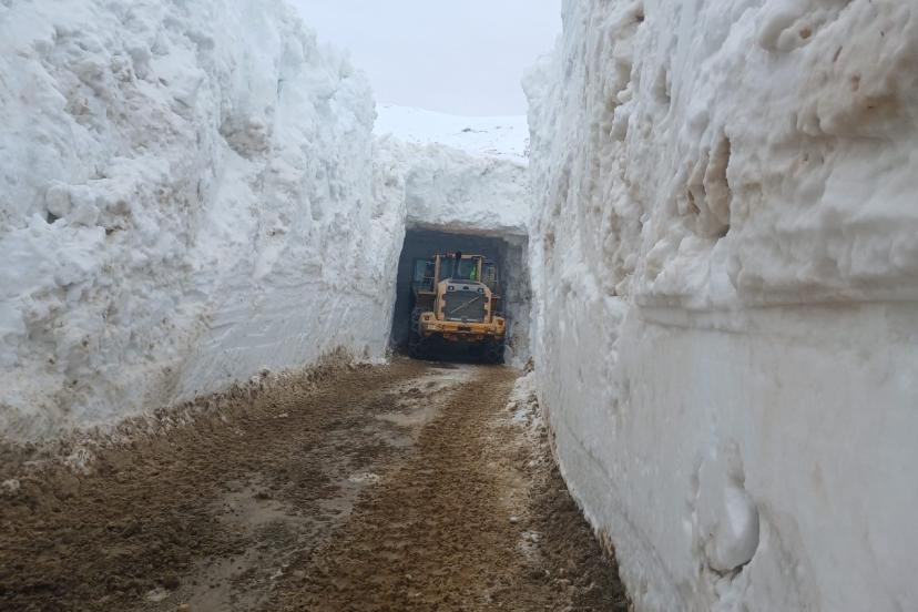 Nisan ayında 4 metrelik kar tünellerinde çalışma
