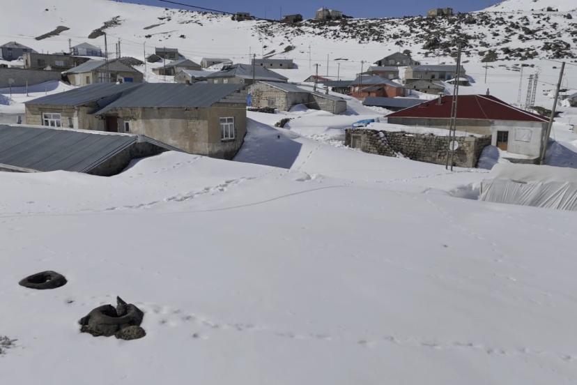 Bitlis’in Adilcevaz ilçesi Süphan Dağı eteğindeki Kışkılı Mahallesi, nisanda yer yer 3 metreyi bulan karla baharı bekliyor.