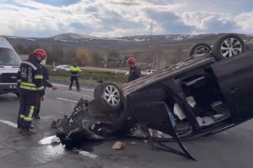 Erzurum istikametinden seyir halinde olan bir araç ile kavşaktan ana yola çıkan otomobilin çarpışması sonucu meydana gelen kazada araçlardan biri takla atarak ters döndü.