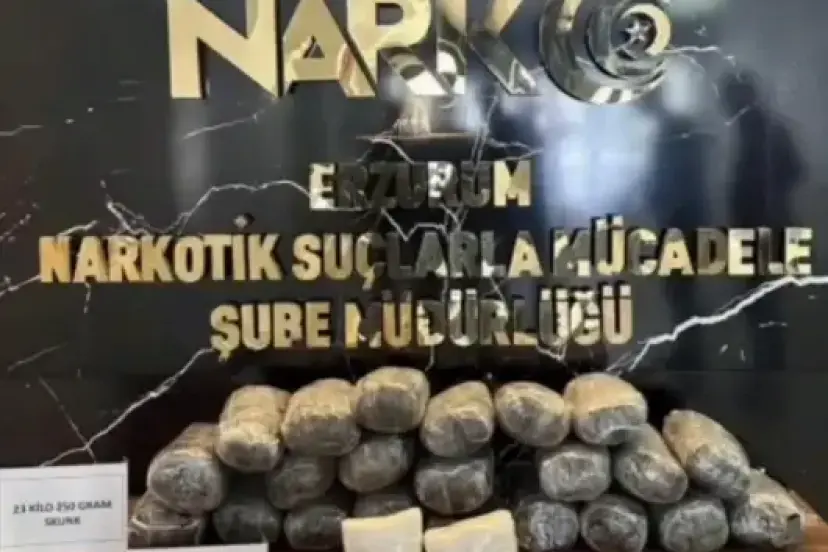 Erzurum Cumhuriyet Başsavcılığı’nın koordinesinde Emniyet Müdürlüğü Narkotik Suçlarla Mücadele Şube Müdürlüğü ekipleri, durdurdukları bir otomobilde arama yaptı. Narkotik madde arama köpeği Hera’nın da katıldığı aramada otomobilin bagaj bölümünde 23 kilo 250 gram skunk, 11 kilogram metamfetamin bulundu.