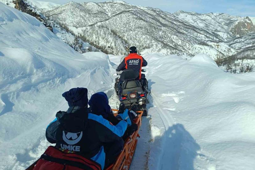 Tunceli’nin Ovacık ilçesinde etkili olan yoğun kar yağışı sonrası kırsalda rahatsızlanan 2 vatandaşa, UMKE ve AFAD ekiplerinin koordineli çalışmasıyla ulaşıldı.