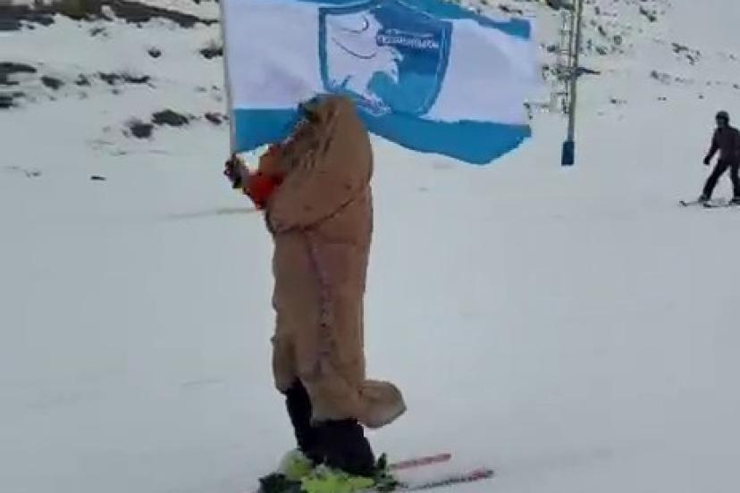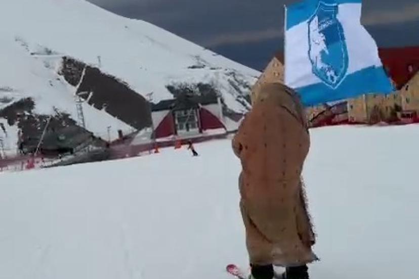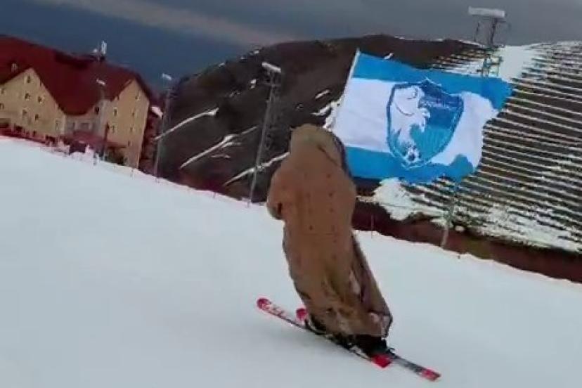 Son olarak Erzurumspor bayrağı ve ehramlı "Naciye Bibi" tiplemesiyle kayak pistinde görünen Abdullah Hanlı, kayakseverlerin ve sosyal medya kullanıcılarının beğenisini aldı.